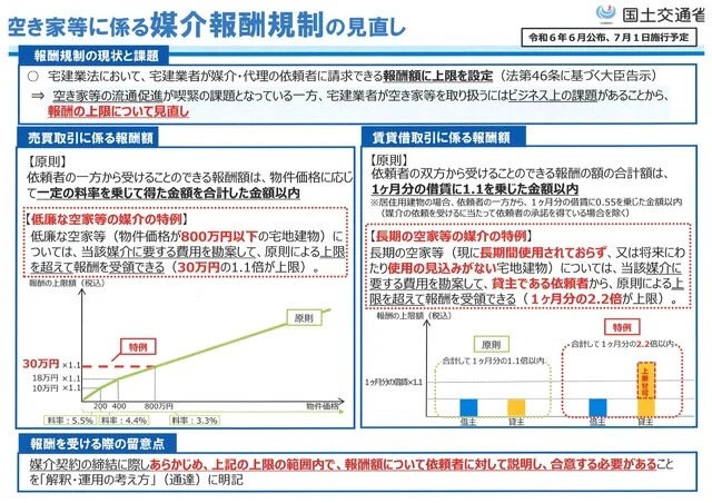 【国土交通省】宅地建物取引業者が宅地又は建物の売買等に関して受けることができる報酬の額及び宅地建物取引業法の解釈・運用の考え方の一部改正について